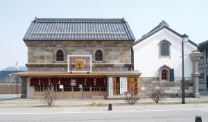 店舗は1894(明治27)年、蔵は明治10年代(推定)に越後国北蒲原郡呉服雑貨商、長野徳太郎によって建てられました。伝統的な町家形式と洋風のアーチ窓という和洋折衷の特徴をもつ、木骨石造というつくりになっています。