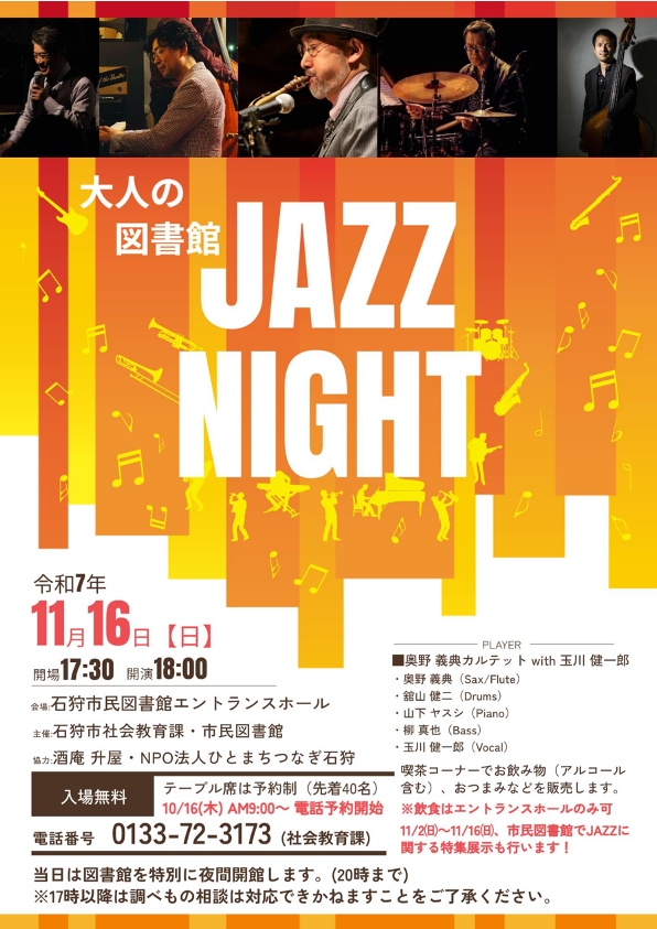 日時:11月16日 日曜日 18時~20時(開場は、17時30分になります。)