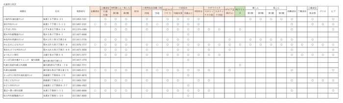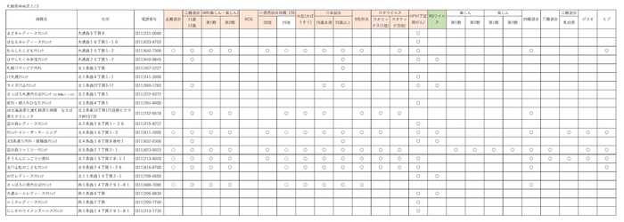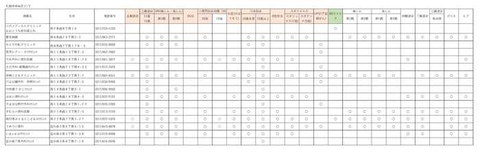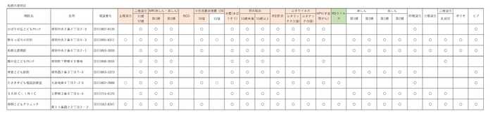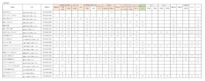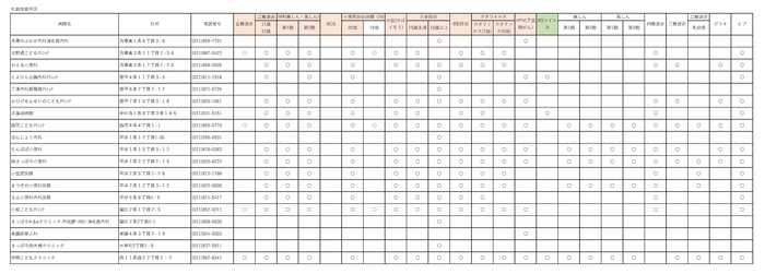 下記の一覧を確認し、直接医療機関にお問い合わせください。