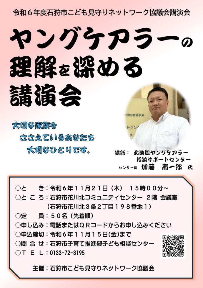 一般社団法人北海道ケアラーズの加藤高一郎さんを講師にお招きし、ご講演していただきました。