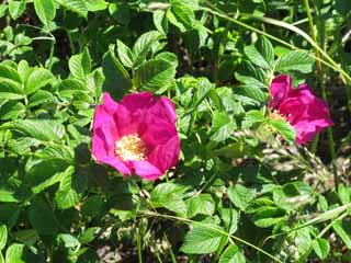 石狩浜のはまなすの実。どんどん赤く色づいてきています。(ち)
